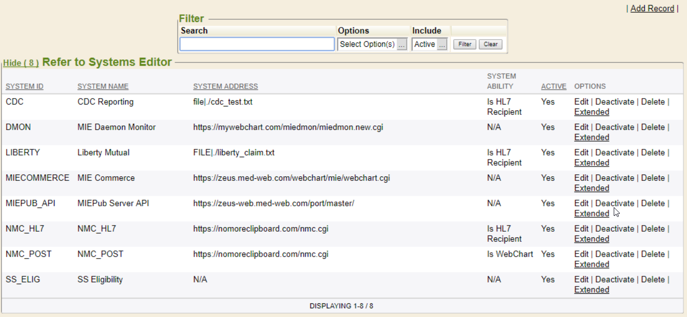 Refer To Systems (RTS) is used to manage connection details for vendors/services that receive data from WebChart. The